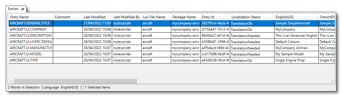 The Microsoft Flight Simulator 2020 Localization Manager is a tool supplied with the SDK that can be use to generate *.loc files so you can have localized strings within your packages. This page describes the different parts of the tool and tells you what everything does. To find out how to use this tool please see the following page: