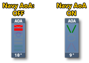 - HUD Navy AoA: This can be used to enabled or disable the navy-style AoA indicator.NOTE: This option is only applicable when VCockpit HUD is enabled.