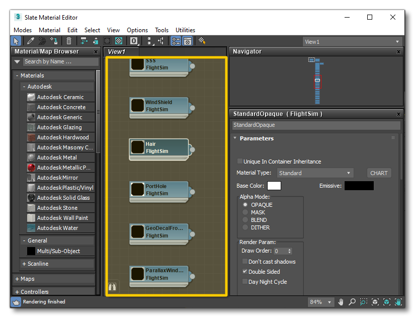 If you open up the Material Editor within 3Ds Max you can then explore the materials that have been used by the objects in the scene. The special materials for the simulation will all be labelled as FlightSim: