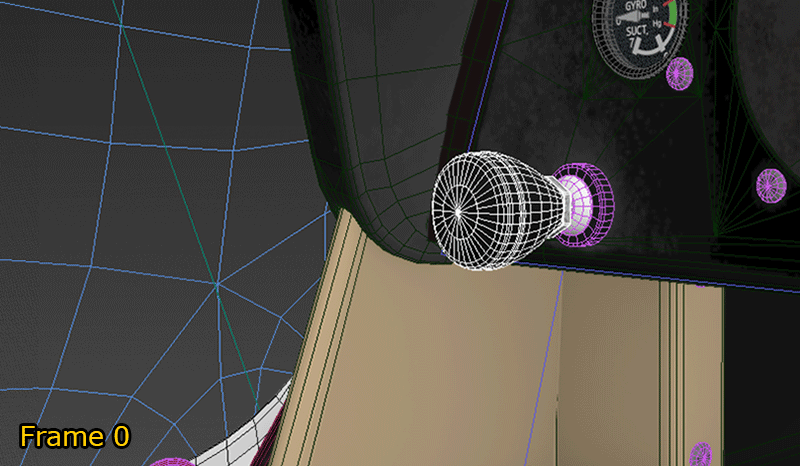 Keep in mind that all of the movable parts of the cockpit should be animated, and as such they should be modeled with this in mind. Care must be taken to ensure that the various component parts are modeled in such a way so as not to expose missing backfaces or clip through other objects when they shouldn't.